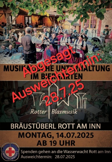 Mit unserem alljährlichen Benefizkonzert im Beirgarten des Bräustüberl hatten wir wetterbedingt zunächst Pech. Letztlich mussten wir auf Ende Juli ausweichen. Dies schmälerte aber den Ertrag für die Ehrenamtlichen der Wasserwacht nicht und es wurde eine bemerkenswerte summe eingespielt